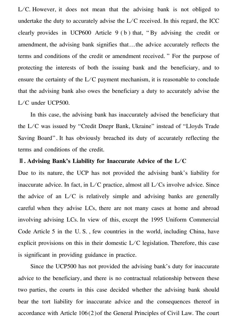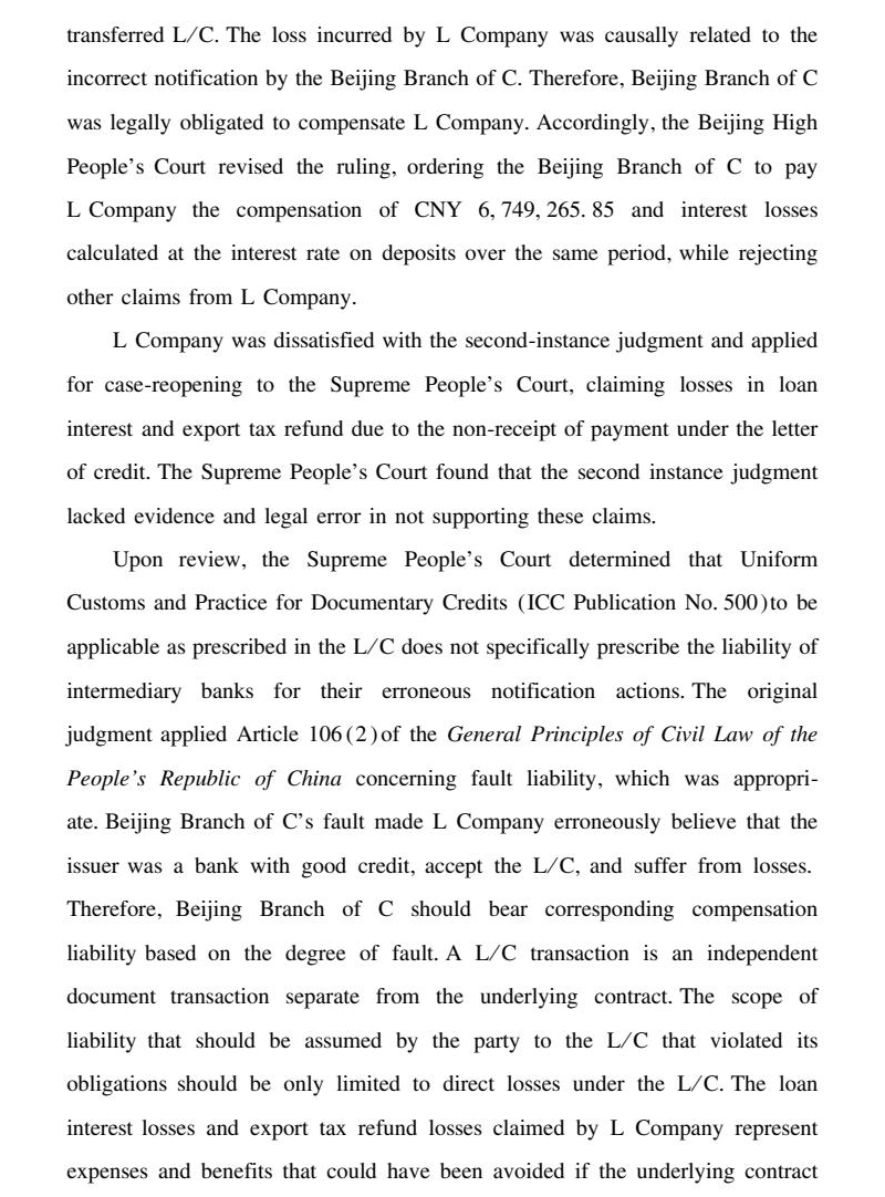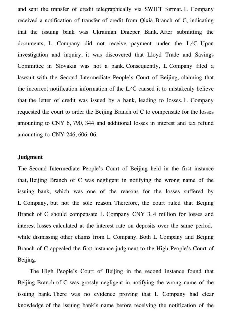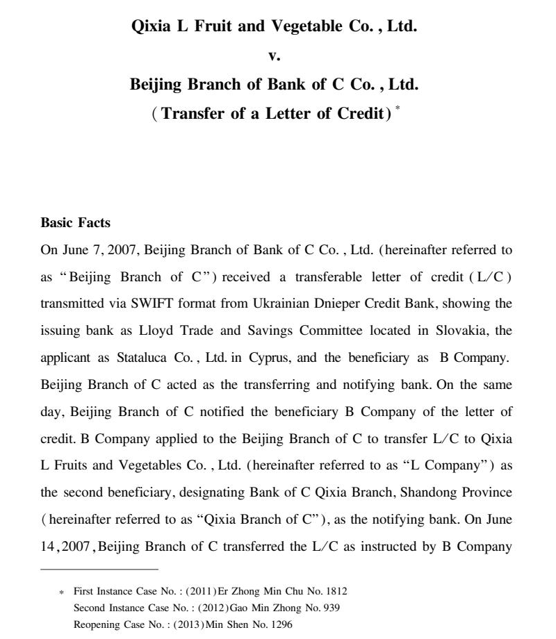 L* Fruit and Vegetable Co. ,Ltd v. B* Branch of Bank of C* Co. ,Ltd. ( Transfer of a Letter of Credit )